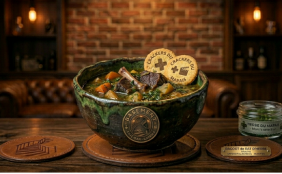 Directement sorti du marais, ce Marmitée de l’Ogre est un ragoût rustique pour les aventuriers en quête de force. Ce plat signature marie la tendreté d’un mijoté de bœuf à un bouillon épais infusé d’herbes sauvages et de racines du potager. Servi dans son bol en bois traditionnel.