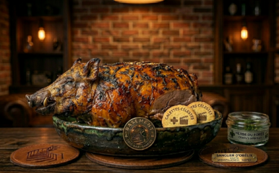 Directement sorti de la forêt armoricaine, notre Marcassin Rôti est le festin ultime des irréductibles. Ce plat signature marie la tendreté d’une pièce de sanglier fondante à un jus corsé aux baies sauvages et herbes de la garrigue. Servi dans son écuelle de bois traditionnelle.
